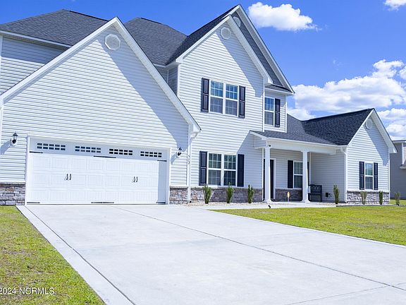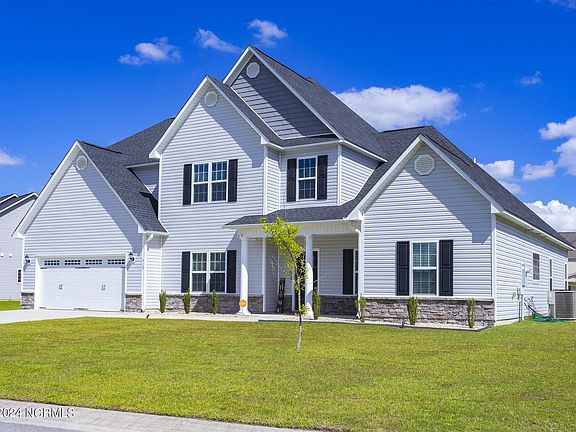 MOTIVATED SELLER! $10,000 USE AS YOU CHOOSE! Welcome home to this meticulously maintained property built in 2019, perfectly situated near beaches, shopping, & Camp Lejeune. This impressive 5-bdrm, 3.5-bth home w/bonus rm in the sought-after Avalon floorplan, boasting 3,873 sq ft, on a 0.45-acre lot in the highly desired neighborhood of Stateside, outside city limits. Updated & low maintenance curb appeal, a welcoming open foyer filled with natural light, warm vinyl wood flooring throughout & the home's interior has recently been painted. Off the foyer, a versatile flex rm awaits, perfect for a formal dining rm, office, home gym, or more. There's a large primary bdrm on the main floor, a true retreat, featuring trey ceilings, a bdrm-sized walk-in closet, a beautifully updated bth w/dual vanity, shower, oversized soaking tub, & direct access to the backyard. The main floor also features a spacious living rm, an updated half bath, a 1st floor laundry rm, & an impressive, open kitchen. Perfect for entertaining, it seamlessly blends w/an informal living area & dining rm, featuring an oversized kitchen island, dual ovens, granite countertops, ample storage, stainless steel appliances, updated backsplash, electric fireplace, & plenty of natural light, w/access to the back patio, yard, & garage. Upstairs, a welcoming large ensuite awaits, w/a full bth, large walk-in closet, & king-sized bdrm set that will convey w/the hm. There are 3 additional spacious bdrms, each with walk-in closets, another full bth, & a bonus rm. Outside, a large screened-in patio that has furniture ready for your enjoyment, along w/a firepit area & plenty of yard space for all your backyard dreams. If that's not enough, the home also comes with a 1 yr home warranty, termite bond, security system, TV mounts & much more! Don't miss the opportunity to own this stunning home with tons of extras. Alpha Mortgage is the preferred lender, see Agent Comments & Advertising for additional details.