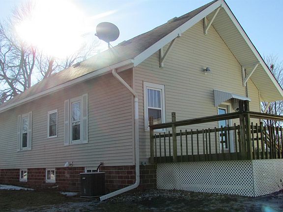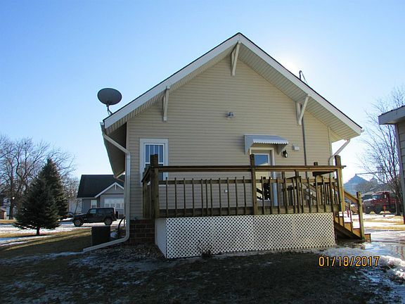 Enjoy Small Town Living! Move right into this recently remodeled home! Main floor features entryway/mudroom/office, living room open to gorgeous kitchen, two bedrooms, 3/4 with tiled walk in shower, and large deck off of kitchen. Basement features laundry, claw foot bathtub and room for plenty of storage. 2 car detached garage. Large backyard with no neighbors to the back. Improvements made within the last 1 1/2 years: wiring upgraded, plumbing replace with PEX supply lines and PVC drains, remodeled kitchen and bathroom, paint throughout, carpeting, light fixtures, partially finished the basement, added bathtub to basement, relocated heating ducts to exterior walls, insulated attic to 11, and added deck to the rear of the house.