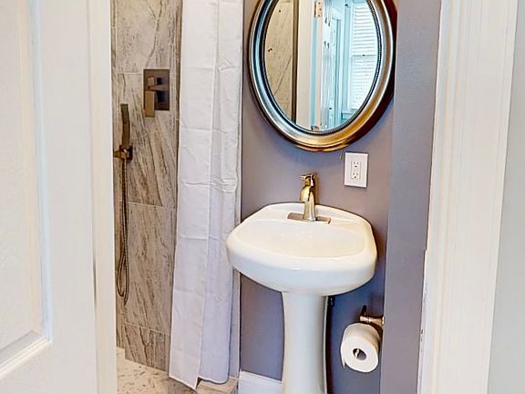 The bathrooms have been tastefully updated with marble floors and fully tiled showers, each featuring dual shower heads. You'll appreciate the spacious walk-in closets and a convenient laundry room located off the center hallway.
