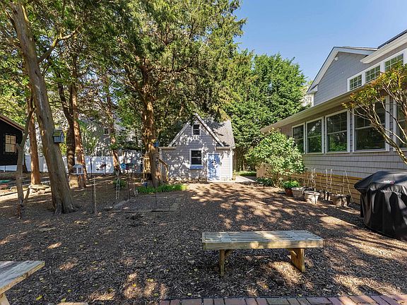 Immerse yourself in the light, heart, and beauty of this stunning 5 bedroom, 4 bath home just steps away from the Delaware Bay Beaches. Featuring gorgeous hardwood flooring throughout that complements any decor, the home boasts a stunning kitchen with white cabinetry, crown molding, granite countertops, a large kitchen island with butcher block, stainless appliances, and a subway tile backsplash. The back family room is a true sanctuary, finished in shiplap and wood planking with a cozy fireplace and ample space to relax and enjoy a meal while taking in the serene view of the woodsy backyard. Step out onto the spacious deck for some sunning or a cookout. The rear yard has plenty of room for a pool if desired. This house is perfect for hosting friends and family, with two living spaces on the first floor and a bonus living room upstairs for added privacy. The first floor features a full master bedroom and bathroom, along with two guest bedrooms and a shared hall bath. Upstairs, you'll find two large master bedrooms with vaulted ceilings, each with its own stylish bathroom. Don't miss the balcony with peeks of the water! The large front porch offers lovely views of the surrounding gardens, creating a perfect spot to relax. Situated on a quiet residential street, the home is just two houses away from the path to the beach and a 5-minute walk to Cox Hall Creek public land park with trails, dog walking, fishing, biking, and more. Enjoy the beauty of sunsets from your porch and the convenience of an outdoor shower. Additionally, the home includes a laundry room/pantry off the kitchen, lots of closets and storage, and gardens that envelop the property. This home comes mostly furnished and includes extras such as a shed/garage with bonus space above it, ceiling fans in all rooms, solar panels, and more. Schedule your private showing today to experience all that this home has to offer!
