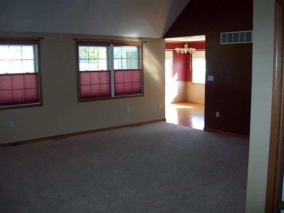Cathedral ceiling in living room to open balcony; 3 car garage, central vac, jetted tub in master bedroom, some hardwoods, crown molding, custom cabinets.