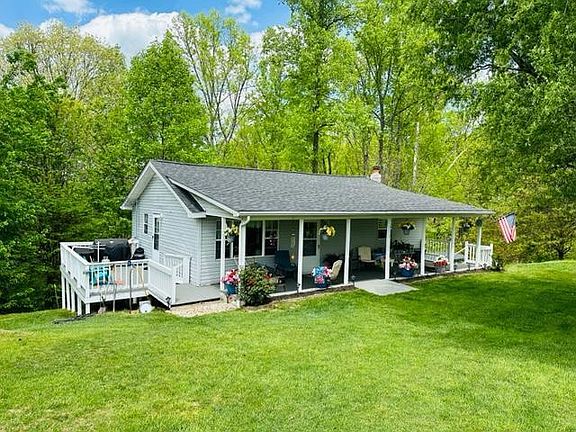 If you want to sit on the porch and watch deer or take a walk to the lake. This is the home for you. This home offers upstairs 2 bedrooms, 1 full bathroom. new kitchen cabinets with granite counter tops, all kitchen appliances stay with home, along with a partly finished walk-out basement that offers another kitchen with appliances), 1 bedroom, 1/2 bath with washer/dryer, living room, office, wood burning stoves, security system, 2 outdoor buildings (1 with electric), 4.07 wooded acres, 2 porches and approximately 1/2 mile from Wood Creek Lake boat dock.