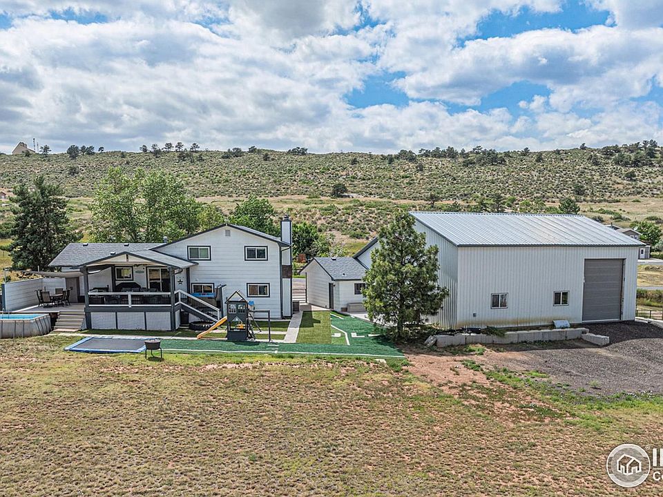Need some space? Check out this awesome acreage property that's close to town with a huge shop! Nestled in the beautiful foothills just west of Loveland. Completely remodeled in 2019, this property has it all! The home boasts wonderful finishes throughout including EVP flooring, spacious kitchen & living room, a family room w/ fireplace, & rec room, additional bed & bath in basement. Plenty of cabinet & counter space in kitchen w/ a pantry. All appliances included. Large primary suite was added in 2021 & offers a huge 5-piece bath w/ heated floors & big walk-in closet. The outdoor living space & views are amazing! Enjoy summer evenings on the 640 sf covered deck or take a soak in the hot tub or small pool. In addition to the 2 car attached garage, there is a huge, heated 1,920 sf shop that was built in 2023! The shop is a dream building w/ 17 ft ceilings & is a drive-through w/ 3 14 ft doors. There is a mezzanine for extra storage. The concrete floor is heated & has a drain. It's also complete w/ 100 amp service and 220. The house has baseboard heat but also has A/C. You'll never have to hassle with a propane tank as gas is on the property from Xcel. The Rain Soft whole house and reverse osmosis drinking water system is also included. Don't miss out on this one of a kind property that has it all! Colorado living at it's best!