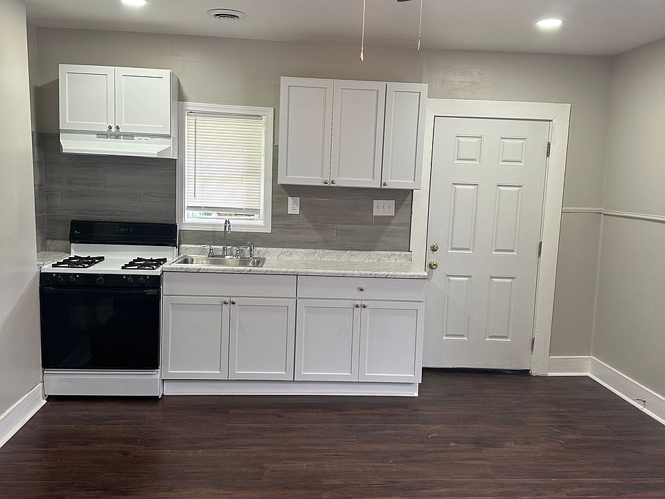 Brand new 2 Bedroom apartment for rent on the first floor of a top and bottom duplex. The whole building was just renovated with new plumbing, new flooring, new kitchen, new bath, new drywall and paint, etc. Comes with gas stove and fridge. The spacious 1100 sq ft apartment has central AC and heat, washer/dryer hookups and huge closets. Rent is $895 per month with a $895 deposit. Owner pays water, sewer, trash removal and yard maintenance. Tenant pays for gas/electric and cable/internet. It is ready to move in now. Owner pays water. 1 year lease. No smoking.