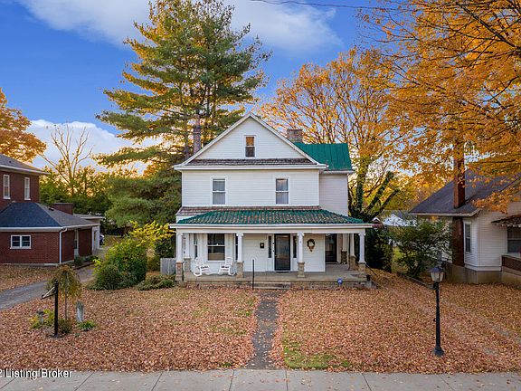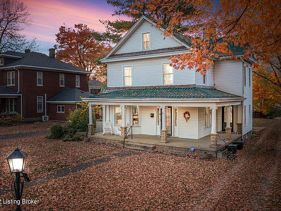 Location, Location, Location! This Historic home has all the charm and character you would expect in an older home and is located in the heart of downtown Bardstown, the Bourbon capital of the WORLD! The home is over 100 years old, but has been meticulously maintained throughout the years. Beautiful (original) HARDWOOD floors on all three levels that were recently coated and refinished and are a focal point anywhere you find yourself in the home. The home spans 2,800 sq ft, has 4 bedrooms, 2.5 baths, & 10 ft ceilings on the main level with numerous working fireplaces. The kitchen has been remodeled with quartz countertops, stainless steel appliances, and tiled accent wall. Off of the kitchen is a sunroom with awesome views of the fall foliage. Large formall dinning room with incredible 6 inch crown molding. Venture up the beautiful staircase to the second level where you will find three good sized bedrooms and a full bath with claw foot tub (new faucet, body sprayer/plumbing with pex piping). Up the second set of stairs you will find a massive 4th bedroom with hidden room that was once used as a place to store bootleggers booze during prohibition! In the walkout basement you will find a recently added 1/2 bath, laundry, and a huge cellar perfect for storage. New windows installed in lower level (approved by the historic reserve). Picture yourself sitting in a rocking chair on the wrap around front porch good Bourbon or coffee in hand, watching as happy people walk by to all the shops, restaurants, and entertainment. This house has it all! And did I mention, Bardstown has been named as Best Small Town in America!!! Schedule a private tour of the home today!