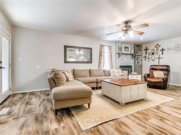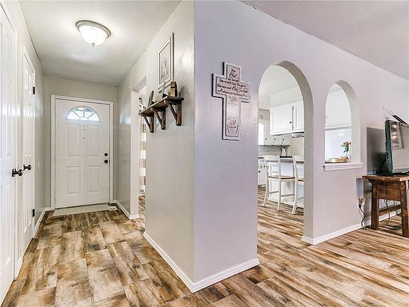 This house WON'T LAST LONG!!! It is located just blocks away from the extremely popular Cashion Schools & sits right in the heart of an ideal family neighborhood. This adorable home has been painted inside & out with a brand new roof just a year ago. Huge shade trees provide wonderful curb appeal & provide relief from the west sun across the entire house. Once you step inside you'll see the wood-look wide plank tile that runs throughout the home. The large living area has lots of space & french doors that open to an amazing patio covered with a custom pergola. Invite all your friends over for a cookout and relaxing evening. The garage even has an unfinished half bath that requires very little to finish it out. This is perfect for that outside entertaining. The covered patio is even wired for a hot tub already! Do you love farmhouse charm? This house has loads of it with its painted finishes, custom countertops and crisp color palette. This house has it all, don't delay, it won't last.