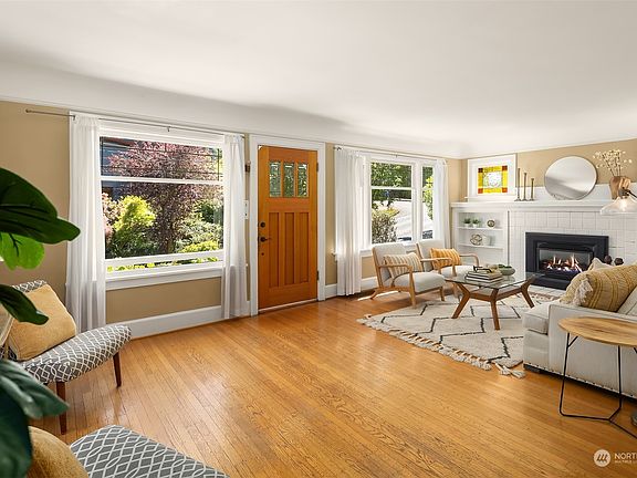 Don’t miss this Seattle charmer with renovations throughout and peekaboo views of Green Lake from the manicured yard. The open floor plan seamlessly moves you through the comfortable living spaces. A blend of PNW traditional style with built-ins and arched doorways meets contemporary upgrades. The hardwoods shine and sunlight fills the home, making for natural transition when you walk out to the back deck, looking over the yard and lush garden. The idyllic primary bedroom shows off lake and mountain views, a fireplace, Juliet balcony and spacious closet and bath. The finished lower level is a complete MIL unit with storage and privacy. Off street parking with alley access. When you think Seattle living, you picture this home.