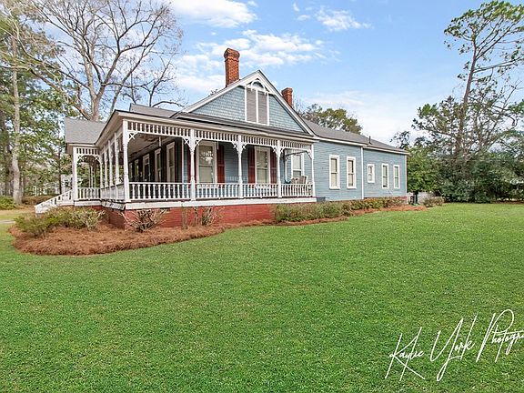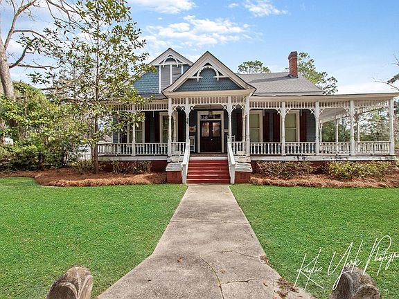Beautiful Historic Home located on large corner lot 1.6 miles away from Lake Eufuala. 3 Large bedroom and 3 baths. Pinewood hardwood floors throughout home. Covered front porch with tons of Gingerbread detail and a back porch complete with painted blue ceiling. spacious kitchen is located right inside the back covered porch. This home is very charming and ready to be your lake side retreat or your primary residence. large yard with side yard parking space. National Register of Historic Places.