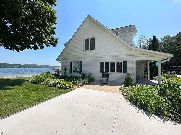 Welcome to Lake Charlevoix where you will enjoy over 117' of private and deeded sandy frontage! Lovely South Arm listing featuring 3bedrooms, 4 full bathrooms, a beautiful remodel and very well thought out improvements! This gorgeous home offers a custom kitchen, granite counters, soft close cabinetry, industrial style gas stove and nicely appointed nautical fixtures! All newer hickory floor covering &luxury tile throughout the main floor, including a newer second main floor full bathroom with laundry attached! Newer added master suite with private bath, including steam shower, heated floors and two closets! Add all these great updates of the inside with composite decking on both the large lakeside deck and back side of the home, a newer concrete driveway, 28 x 36 pole barn updated landscaping and so much more! Views for days, 40-48' dock included in the sale and a lifestyle you will want to make yours full time!