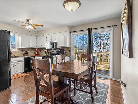 Beautifully updated home on expansive lot in great neighborhood with lots of amenities! Ready to move in and make yours! Updates include new black appliances, sink, granite countertops and white cabinetry in kitchen. Freshly painted interior. New A/C unit, window treatments, bathroom shower heads, toilets, ceiling fans in kitchen and 2nd/3rd bedrooms. Hard woods in kitchen/dining area, living room and entry. Added shelving in utility room and garage. Vaulted ceiling in living room with brick fireplace. Door off kitchen leads to large deck and fenced back yard. Lower level includes family room and walkout to patio/backyard. Subdivision amenities:3 swimming pools, tennis court, fishing lake, dock, greenway, walking trails and playgrounds. Olathe School District.