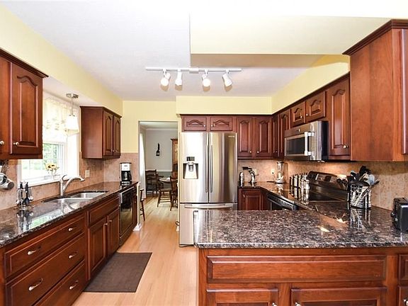 Visit this beautiful four bedroom and three bathroom home on a third of an acre wooded lot in Revere School District. You will be greeted by an extra wide driveway and two car garage. Walk into the foyer and you will find a first floor that makes entertaining a breeze with its large Living Room, Dining Room, eat-in Kitchen, Family Room, spacious Sun Room, and backyard Patio. The Sun Room has sky lights and multiple sliders to the secluded setting and the entire backyard is made for outdoor living. You will also find a gas grill and shed for your convenience. Other first floor features include a gas fireplace with remote control and surround sound in the Family Room and Stainless Steel Appliances and granite counter tops in the Kitchen. The second floor boasts four nice-sized bedrooms with a master bedroom with its own bathroom and two closets. The hall bathroom has a great jetted tub. The lower level has a 35 x 15 Recreation Room ready for entertaining. There is plenty of storage in this home, great newer windows, and hardwood floors throughout. Make new memories in the ready to move in home.