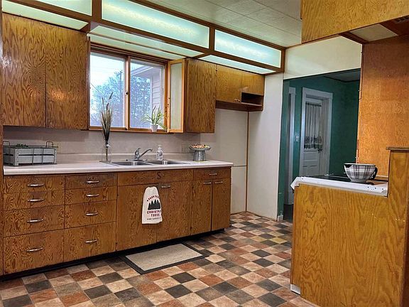 This home invites you right in from the street! You will appreciate the open staircase, French doors leading to the dining area, spacious living room, and open kitchen. The built in corner benches are perfect for storage and seating for your kitchen table. You will appreciate the built in lighting above the desk nook in the kitchen; the kitchen window overlooks your back yard. There is generous cupboard space. The main floor laundry is located off the kitchen and includes a pantry and built in cupboards. The half bath is conveniently located off the laundry room and back door entry. The cupboards on the back porch are original! One bedroom is located on the main floor, and the three bedrooms upstairs have wood floors under the carpet and walk in closets with built in shelves. The full bathroom upstairs is spacious. The basement is ready for your storage needs! You have generous storage in the oversized one car detached garage. Shingles and gutters new in December 2021; main sewer replaced in December 2021. Come check this home out TODAY!