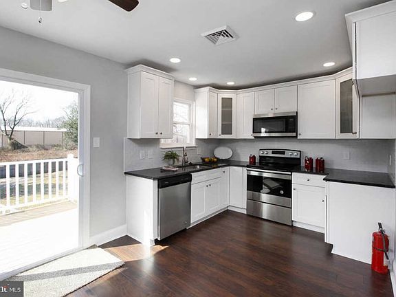 Great curb appeal and even better in the inside. Remodeled throughout, and waiting for its new owners. Living room light and bright. Kitchen, dining area combo, with tiled backsplash, granite tops, recessed lights, crown molding on the cabinets, and sliders to rear deck. Huge fenced yard with patio. Two bedrooms on the main floor with new wall to wall and ceiling fans. Full bath, tiled tub, and floor. Master bedroom, full bath, stall shower, tiled floor, and walls. Laundry room and family room all on the lower level with french doors leading to rear yard. What a nice property.Call today for your personal tour.