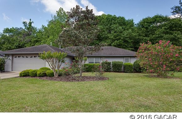 **Under Contract - Backup offers accepted** Great 3bed/2bath split plan home w/ large back yard in Hamilton Pond. Family/living space is open & bright w/vaulted ceiling. Kitchen has updated low maintenance floors that flow throughout the breakfast nook. Guest rooms are split between a shared full bath. Master suite is located on other side of house w/ large luxury bath w/ double vanity, while oversized walk in shower provides ample room. New flooring also in laundry room. Relatively new HVAC and LED lighting saves you money! Enjoy low HOAs! Privacy abounds in back yard as it backs up to wooded conservation easement. Minutes from I-75, North Florida Regional Medical Center, Town of Tioga and The Oaks Mall. Close to Santa Fe College. Zoned fo