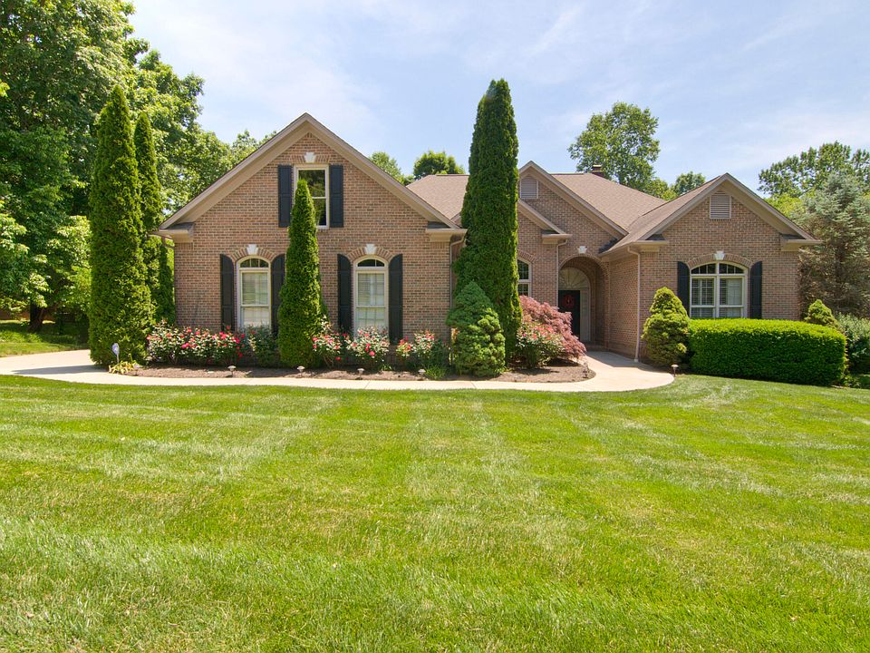 Beautiful all brick rancher in fabulous Farrafut location. Enter into spacious home at foyer with columns, living room with fireplace and wall of windows, and dining room open to left. All with soaring ceilings and stunning moldings. Huge eat-in kitchen features quartz tops. Super-sized island for preparing and cooking. Tons of beautiful raised panel cabinets-some with glass doors, desk area, and triple windows, Double doors open to very large screened porch overlooking peaceful moldings, and opens to screened porch. Master bath has whirlpool tub and large shower with seat, and coffee and frig center for morning convenience. Bedrooms 2 and 3 are on other side of house. Bedroom 4 could be office and has beautiful built-ins. Pretty Powder room welcomes guests. Extra wide doorways.
