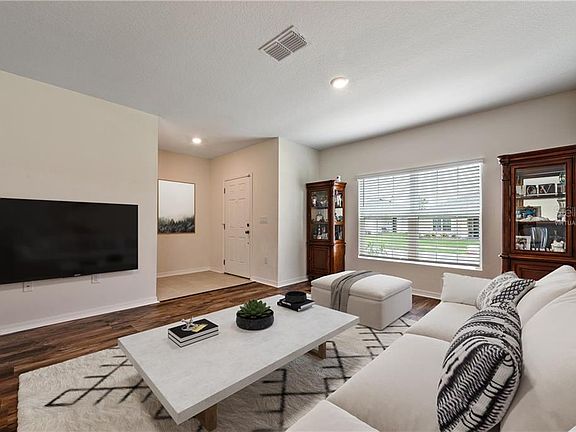 One or more photo(s) has been virtually staged. Don't wait to build when everything in this beautiful home has been done for you!! BUILT IN 2019 this home is TURN-KEY and showcases a bright OPEN FLOOR PLAN, HIGH CEILINGS, SPLIT BEDROOMS and it's in a great location with easy access to shopping and dining! Stepping inside you will immediately notice the open and bright floor plan, gorgeous ENGINEERED HARDWOOD FLOORS, high ceilings with RECESSED LIGHTING and LARGE WINDOWS that let the NATURAL LIGHT shine in! A FLEXIBLE FORMAL LIVING and DINING space flow nicely into the well equipped kitchen boasting quality appliances, SOLID SURFACE COUNTERTOPS, ample storage including a CLOSET PANTRY and a BREAKFAST and DINETTE for casual dining! The hardwood floors continue in the spacious FAMILY ROOM also featuring an OVERSIZED SLIDING GLASS DOOR for access to your COVERED LANAI. Ideal SPLIT BEDROOMS give you a generous PRIMARY SUITE offering great space for all your furniture and a private EN-SUITE BATH with DUAL SINKS, SHOWER with BUILT IN SHELVING, plenty of storage and a large WALK IN CLOSET! Three additional bedrooms all with recessed lighting and good sized closets along with a SECOND FULL BATH complete this perfect floor plan. A COVERED LANAI out back overlooks a POND and gives you a peaceful place to relax with a cup of coffee and a good book or cookout with family, plus you have hammock posts to put up your hammock and watch the stars! Walk to the communities TOT LOT and POOL to burn off some energy and cool off on a warm Florida afternoon, Laurel Estates is a friendly, walk-able community with something for the whole family! Conveniently located with easy access to Hwy 27 and I-4 for a quick trip to the Orlando attractions, Championsgate, Northeast Regional Park, shopping, dining and so much more! You will be impressed - don't miss out on your chance to make this your HOME SWEET HOME and make memories for years to come! **Tour this property virtually on Zillow!**