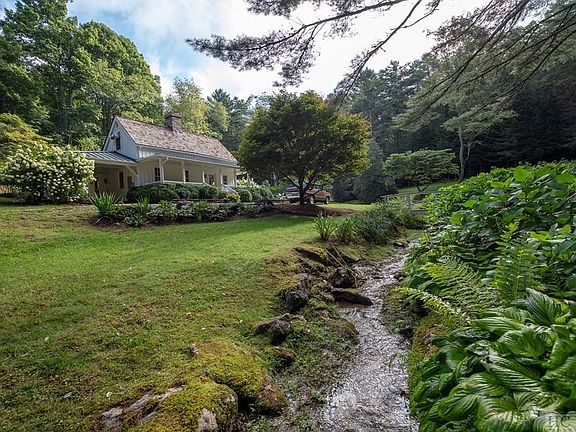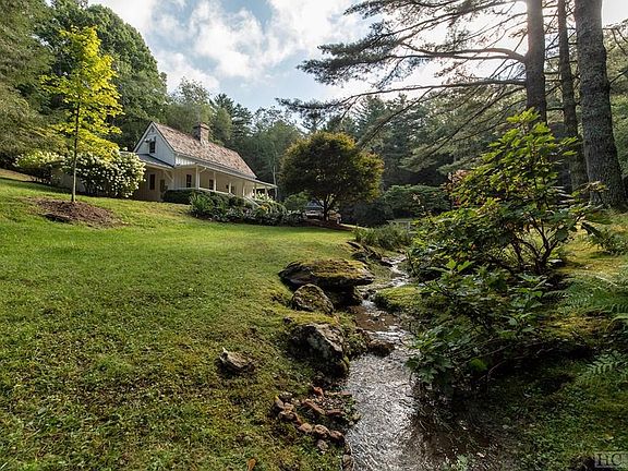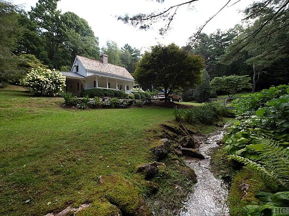 This vintage farm cottage (circa late 1800s) has recently been lovingly updated. Complete renovation includes new roof, kitchen appliances and cabinetry, plumbing fixtures, HVAC, completely new electrical, new laundry, specialty lighting by Urban Electric Co., and more! Nestled in the heart of a small watershed valley near Lake Glenville's Signal Ridge Marina, this home hearkens days gone by. Beautiful two sided stone fireplace graces den and living area, both with windows overlooking the gardens and grounds. Upstairs, two bedrooms share the Jack-n-Jill half bath. The second full bath is on the main level. Just off the updated kitchen (more windows with garden views) is a one car carport. Original wood floors throughout. The rocking chair front porch allows framed views of the picket fenced dahlia garden, and the sounds of the hydrangea lined babbling brook. Property includes nearly 11 acres of picturesque charm. Adjoining 34+ acres offering ridgeline lake views and increased privacy is also available for purchase. This treasured property was recently featured in Aug/Sept 2020 Garden and Gun Magazine.