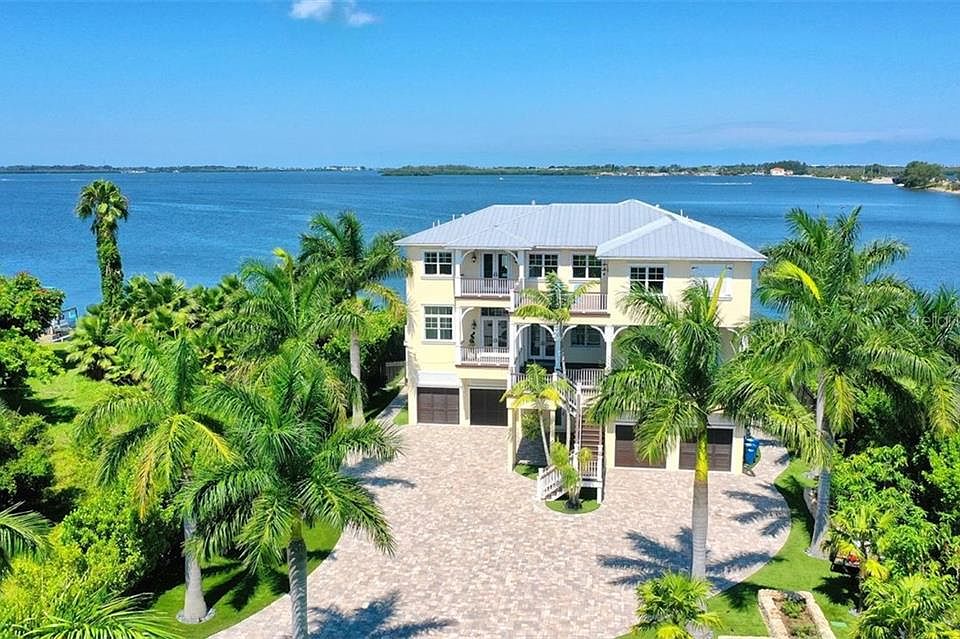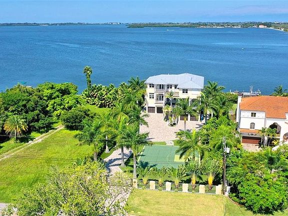 Have you been searching for Coastal living at it's finest? Is boating, water toys and big bay views on your list of must-haves? No detail was spared in this stunning gated estate created by Ross Built construction featuring 5 bedrooms, 5.5 bathrooms & 4+ car garage. Over 1/2 acre nestled into Palma Sola Bay with 105 ft of soothing waterfront and sunsets galore! A perfect blend of coastal, modern and timeless, this residence offers a myriad of natural sunlight and views that will simply WOW you! The open floor plan is so well-designed, perfectly thought out for the most discerning buyer. Gourmet kitchen features stunning walnut cabinetry, solid stone counter tops, commercial grade appliances, Sub-Zero refrigerator/two wine coolers/beverage centers, two islands with prep sinks and an amazing walk-in pantry. All 5 bedrooms are en-suite offering everyone their own privacy. The master retreat offers a sitting area with a double sided fireplace, amazing deck, owners office with built-in cabinetry, separate vanities, walk-in shower, luxurious soaking tub, huge built-in closet system and a Juliet balcony. Hardwood floors run throughout the entire home, with tile and marble in the bathrooms. Elan full automation system for LED lighting/whole house surround sound/electric blinds all operated from an app on your phone. Elevator from ground level, composite wood decking verandahs from almost every main room, large wooden mouldings surround each hurricane-rated window and door in a masterfully designed fashion. A sportsman's paradise can be found outdoors with maintenance-free synthetic turf lawn, a 9-hole putting green, half court sports court with LED lights, a 22x50 natural salt-water heated pool with sun shelf & built-in table seating, a covered cabana and sandbox, an all composite wood deck, boat dock & lift with built-in fish cleaning table. All-inclusive outdoor kitchen features a grill with side burner, sink, fridge, icemaker & built in swivel barstools. The exterior of the home is enhanced with full mature landscaping accented with tall King palms, fully fenced w/security gate and LED landscape lighting.