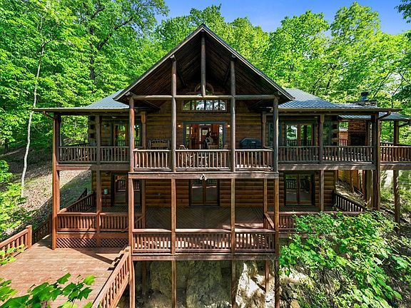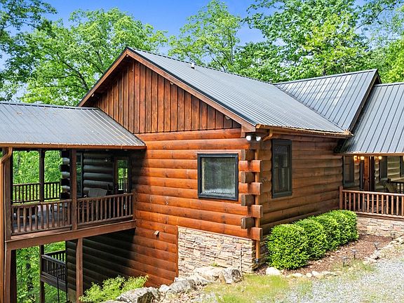 Imagine being high up on the mountain in complete privacy in almost 4 acres...with plenty of parking to invite several friends over for a reclusive weekend. This custom-built cabin-home has only been owned by one family. The cabin has been very well maintained and was on a rental program briefly. The kitchen has a large open area, with a large wrap-around bar-island. The dining area can seat up to 12 people easily. The primary bedroom suite has an owner's closet, a linen closet, a separate shower, and a soaking tub. The suite has open access to the beautiful views off the back deck and has a seating area with a wood-burning fireplace, right outside the door. On the other side of the cabin are 2 private bedrooms with a shared bath. All the bathrooms and the kitchen have black granite stone countertops. The expansive family room features a soaring stone fireplace. The home has a brand new, well-installed, and has 2 large parking areas...one above the cabin with steps down to the cabin, and a drive-up path to the front covered porch. The basement is unfinished for you to build out your dream family game space, with enough room to build 3 to 4 additional bedrooms downstairs. The back of the home has open views to the West for beautiful sunsets, which you can enjoy on the 2 levels of the back decks. There is a storage shed near the front of the home for storing additional items outside the home. The cabin comes fully furnished as you see it. All items stay with the property. Lake Blue Ridge is minutes away, Downtown Blue Ridge is 20 minutes away with shopping, restaurants, groceries, and all your necessities. Basement is stubbed for bathroom and studded for 3 rooms. THANK YOU for showing!