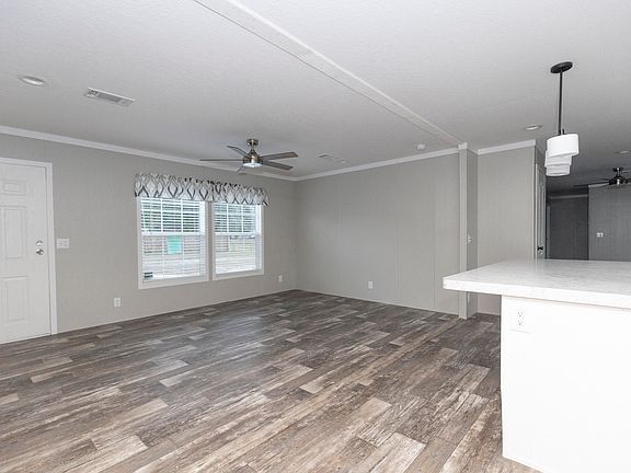 Nestled on a sprawling 1.08-acre lot, this new manufactured home offers the perfect blend of space and comfort. This beautiful manufactured home boasts a thoughtfully designed floor plan featuring 4 bedrooms and 2 full bathrooms for maximum comfort and convenience.The primary suite is a private retreat, complete with a spacious walk-in closet and ensuite bathroom. On the opposite end of the home, three additional bedrooms provide ample space for family, guests, or a home office setup.The heart of the home is the open-concept kitchen, equipped with modern appliances, a large island, and a breakfast bar perfect for entertaining. The kitchen flows seamlessly into the family room and dining area, creating the ideal space for gatherings.Other highlights include a separate utility room.