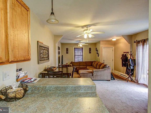 Charming vintage twin with 9 foot ceilings in Pennsburg Borough. You are greeted by an open floor plan with a living room dining area and kitchen and a slider to a future small deck. Kitchen has a breakfast bar for 2, oak cabinets with a window over stainless steel sink. Stackable washer and dryer in back of kitchen area with a half bath and pedestal sink. Large deck leading to the back yard and 2 plus parking spaces off an alley. Basement has storage. Pie shaped steps leading up to the 2nd and 3rd floors. 3rd floor master bedroom has 3 closets and a sitting area. 2nd floor has 2 bedrooms and an updated full bath. Move in condition. Walking distance to restaurants and stores. 10 min to PA turnpike.