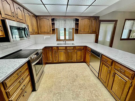 NICE ranch in a great location!! Older neighborhood with large trees and scenic views! Close to school, shopping and restaurants. Roomy kitchen with newer countertops and tile. Loads of cabinetry and all appliances remain. 2 Large living areas PLUS a Sunroom off the back of the home .Lots and lots of built-ins including a custom-made entertainment center in the family room. 2 car garage with extra areas/rooms off the garage for workshops or storage. Work benches and shelving to remain. Newer Furnace and water heater. Attic over garage is floored. Beautiful landscaping around the entire home and yard! Gas approx, $129.00, Electirc $106.00, water, sewage and trash $134.00.00.