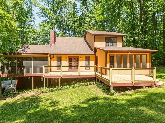 Gorgeous one acre home in serene setting.New plank flooring throughout downstairs,and new carpet upstairs.Freshly painted inside and out.Main level offers shiny new kitchen with new flooring,cabinets,appliances,Granite countertops and fixtures.Kitchen overlooks spacious great room with soaring ceiling and stone fireplace that reaches the top.Great room opens up to generous screened porch and brand new deck. Main level primary bedroom has fireplace,new flooring,new bathroom,newly tiled full length shower,Granite counters,mirrors,fixtures, and plentiful closet.Bonus room off kitchen is convenient to back porch and yard. Another room off kitchen is a pantry but is extra large and can be used for various needs. Upstairs has all new carpet, lighting, adjoining bathrooms with new "leather" Granite.4th Room upstairs can make for great study, office, or craftroom.Screened porch and new back deck overlook a private and level backyard.Extra large full basement. Home just needs you!