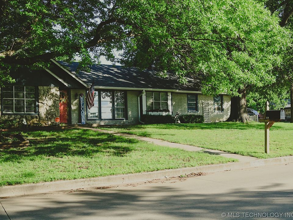 Adorable house sitting on a great corner lot with mature trees and fully privacy fenced in yard. 2 living areas, one with a fireplace and the other combined with the dining room. The back yard has a large covered patio that would be great for entertaining. This home is located just blocks away from Westside Elementary, and within a mile from restaurants and grocery shopping. Sellers are selling as-is.