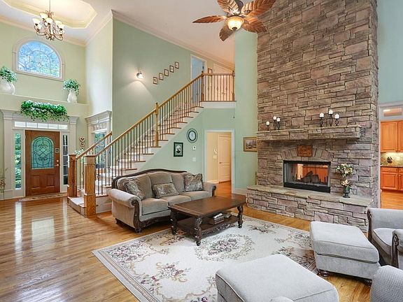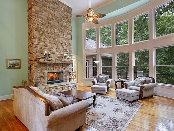 New price, stainless appliances & photos! Unique opportunity to experience mountain living w/the conveniences of suburban living minutes away. This 3 sided brick, executive home is located on 1.98 acres w/total privacy. Mstr on Main & addt'l bed & full bath on main. 2 story great room has gorgeous 2 sided stone fireplace.(2nd side in kitchen).3 porches, front, back & off master. Finished basement. Lots of natural light. Great amenities, pool, tennis, water fall & walking trails. EZ commute w/Express Lanes. Convenient to Northside Cherokee Hospital & Canton Market Place.