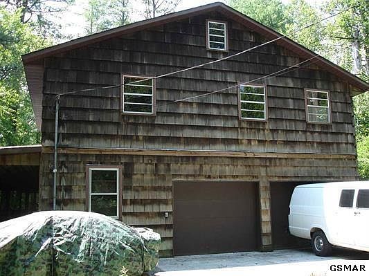 Fabulous potential-Great room has vaulted ceiling. T & G oak walls & ceiling. Pine wood floors & natural stack stone fireplace. with a little TLC this home would be a showplace . Winter Views! 2 car attached garage & 2 car detached garage with perpetual use, Dirt floor basement area. Exterior is cedar shakes.