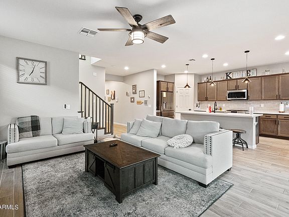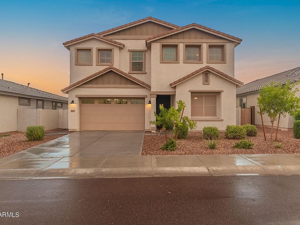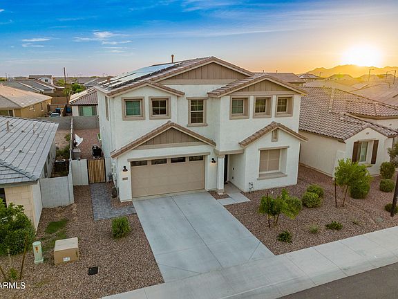 This very well appointed 4 bedroom, 2.5 bath, Den, loft AND 3 car tandem garage home is located in the lovely Blue Horizons community in Buckeye where you will find lush green parks, a ball field, playgrounds and Ramadas! With just over 3,000 square feet this home has it all. Private den located off the foyer. Open concept kitchen overlooking the lovely great room. Kitchen features gorgeous quartz countertops, shaker style cabinets, stainless steel/gas appliances, tile backsplash, nice sized dining area and a walk in pantry. Fantastic upstairs loft. Spacious master with ensuite featuring dual vanities, step in shower and soaking tub with subway tile accents and walk in closet. Amazing outdoor space with large patio overlooking the gorgeous pool and back yard. OWNED SOLAR! GREAT HOME!