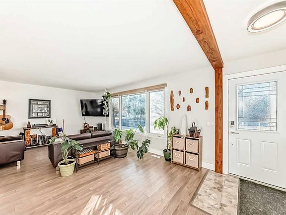 This beautifully cared-for 3 bedroom, 2 bathroom bungalow blends comfort, charm, and modern upgrades. Enjoy a bright, natural layout with vinyl flooring, warm wood accents, and generous bedroom sizes. The kitchen features a built-in breakfast bar and stainless steel appliances, while the developed basement offers abundant storage and additional living space. Situated on a spacious, fenced lot with mature trees, berry bushes, and garden space, the outdoor area is pleasant and functional. A heated, oversized double detached garage adds year-round convenience. With upgraded mechanicals including hot water on demand and furnace, plus a new roof completed last year, this home is truly move-in ready. Located steps from schools, parks, and amenities, this is an opportunity not to be missed.