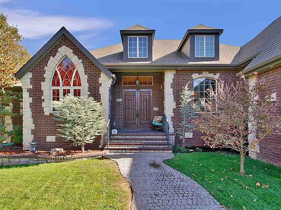 Exquisite custom-built home that is absolutely gorgeous! This is a dream home! Perfectly located in a private, cul-de-sac setting with tranquil water views, this almost all brick and stone home features a cobblestone walkway with a grand double-door entrance. Upon entering the home, you will immediately notice the open floor plan with an impressive kitchen and open living areas. The main floor includes a spacious living area, kitchen, and two dining areas, quarter sawn hardwood flooring, crown molding throughout, and main floor ceiling heights ranging from 10 ft. up to 17 ft.! The gourmet kitchen is spectacular! Some kitchen features include high end granite counter tops and tile backsplash accents, commercial grade dual ovens, a stove ventilation system, an over-sized island with copper prep sink and built-in beverage cooler, a copper pot-filler, custom cabinetry, a Sub-Zero refrigerator with matching cabinetry entry to large walk-in pantry. The master suite is a private retreat with lake views to be enjoyed from the bedroom with fireplace, or step outside and enjoy the view from the composite deck. The master bedroom also includes 8" crown molding and 5" base board moldings with French doors leading to the master bathroom with tile flooring, a whirlpool tub, an oversized tile and glass shower, and dual walk-in closets with custom built-ins. The second main floor bedroom is currently an office with a vaulted ceiling, stunning custom cherrywood built-in's, and this room has an adjacent bathroom (currently there is no closet, but a new homeowner could easily add one). The mud room and laundry area is a dream - this area includes an entry bench with hooks and cubbies, lots of cabinet and counter space, a sink area, an additional pantry, and a desk area. The staircase to the lower level is the same gorgeous quarter sawn wood with iron balusters and sharp moldings. The walkout basement features approximately 10' ceilings with luxury flooring throughout the spacious family and game areas, and lot of windows overlooking the beautiful views. And for perfect movie nights, enjoy the stylish theatre, with all media equipment included in the sale of the home. The basement also includes two additional bedrooms and an additional bathroom with custom tile and granite. Sit back and relax out on the spacious covered deck with ceiling fan and built-in speakers, patio, lush landscaping, and fabulous water views. Other upgrades include sealed garage floors, Low E window glass, dual furnaces, dual 16 seer AC, new hot water heaters, and whole house built-in speakers for a sound system. This home is absolutely amazing! If you are looking for a home with a WOW factor " this is it! You will love all the extras and the picturesque views. Must see to believe!