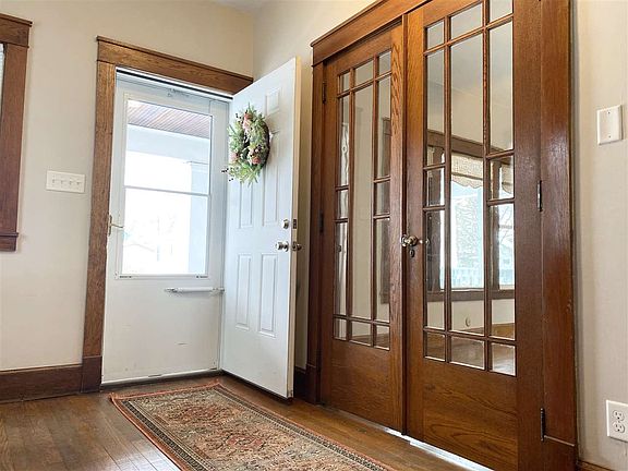 Spacious, 1854 square foot 4 bedroom, 2 bath home on Bay City's West Side. Incredible woodwork & flooring throughout begins in welcoming 6 x 12 foyer. Built ins, coffered ceilings in dining room, french doors to living room and den, beautiful open wood staircase and foyer area. Both full baths (one on each floor) are very generously sized and completely updated with new vanities, tub/shower surround and tile/vinyl flooring. Large bright open kitchen. Spacious bedroom closets. Newer furnace, HWH, electrical and vinyl windows throughout, including basement. Full, clean basement. Large welcoming front porch!