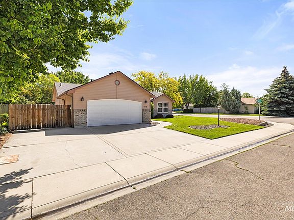 Squeaky clean, single level home in a quiet, established neighborhood. This home lives large with vaulted ceilings, newer wide planked engineered hardwood flooring throughout and an open spacious layout. The great room features oversized windows with an eat-in kitchen accessing the patio and fully fenced yard. The kitchen boasts stainless appliances, breakfast bar, 2 pantries and all appliances, washer, dryer and fridge are included making this home move-in ready. The split bedroom floorplan offers privacy and the generously sized primary suite boasts bathroom with double vanities and a walk-in closet. The large corner lot is banked by mature shade trees for a private outdoor retreat. Lot features also include gated RV parking, a storage shed and sprinkler system is hooked to pressurized irrigation allowing for affordable landscape water. Upgrades include a new roof in 2021, new garage door and updated interior paint.