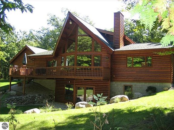 Beautiful Lindal custom built log home just 15 minutes from downtown Traverse City and within minutes of several lakes and rivers. Enjoy privacy and tranquility on the large deck over looking Platte Creek and 7 acres of wood lands. Everything about this home says âEUR˜up northâEUR(tm) from the cathedral cedar planked ceilings to the 20âEUR(tm)x24âEUR(tm) extra detached garage for all your toys..This Lindal Cedar (1/4 log) home is your escape! Homes like this are rarely found so close to town and at an affordable price. New roof and central air system. Kitchenette in lower for possible granny flat or guest who may never leave ;)