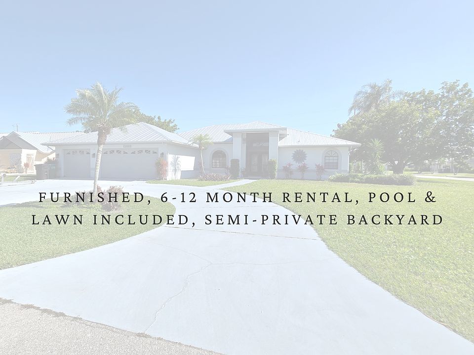 512 SE 33rd Ter, Cape ~ Beautiful 4-bed FURNISHED POOL Home ~ 6-12 months optional AVAILABLE 5/1 6-12 MONTH RENTAL FURNISHED Large South Cape pool home offers 4 bedrooms, 2.5 bathrooms, and 2,410 square feet of living space with an attached 2 car garage (third is not accessible to tenants). Open floor plan with dual sliding glass doors to the mostly private lanai, with access also from the master bedroom. The kitchen features a pass-through window to the lanai - this is the perfect home for those who enjoy entertaining guests, especially with the entry seating area and the main living room! The bedrooms are split, and the master bath features dual walk-in closets, dual sinks, and a beautiful soaking tub and shower. Pets are welcome! LEASE TERMS: 6 months to 1 year, mid term, short term, one year UTILITIES/SERVICES INCLUDED: Trash, pool, and lawn APPLIANCES PROVIDED: Fridge, range, microwave, dishwasher, outdoor grill, washer, and dryer PARKING: 2 Car Garage/Driveway (no parking in the grass) PET RESTRICTIONS: With approval through our Pet Screening process GENERAL REQUIREMENTS: + Application fee is $70 per adult, + Each applicant must have a minimum of 600 credit score, + Combined monthly income 2.5x the rent amount ($7,000), + Security Deposit 1.5x the rent amount ($4,200), + No evictions, active bankruptcies, or co-signers accepted, + Pet or NO pets: Pet Screening process is required for verification (refundable $500 pet deposit per pet, and monthly pet rent of $20 per pet) + Resident Benefit Package (RBP) fee of $50 per month is required (includes bi-monthly AC filter delivery, rental payment history credit building, renter's insurance, and convenient online services), + Terms and conditions provided are considered reliable, however not guaranteed and are subject to change. **Approximate move-in costs $7,200 (rent, deposit, move-in fees)** Please visit our site for the detailed application requirements: NXT LVL Property Management, LLC. Fort Myers, Florida