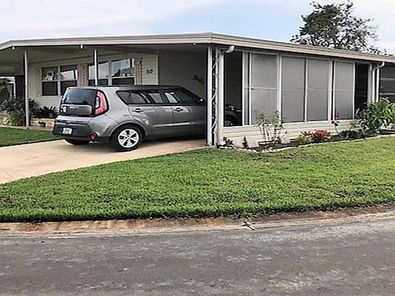 JUST LISTED - UNFURNISHED - $12,500 This home is a D-I-Y special. The home is mostly unfurnished, please ask the agent what stays with the home. The home is located on a corner lot with an enclosed lanai and a screened lanai. The enclosed lanai needs new vinyl on the windows and some other work. The living room is large and bright with room to entertain. The dining room is open to the living room and has very nice built-in cabinets to hold your stuff. The kitchen is a galley kitchen with a white stove, refrigerator and dish washer. There is a tile backsplash around the kitchen. There is an eat-in breakfast area off the kitchen and a pantry for holding your can goods. The guest bathroom has a tub-shower combination and nice sized vanity. The master has a changing area and vanity area. The screened lanai is a great size to have your morning coffee and enjoy time with friends. ACT FAST & CALL TODAY!! Don't forget to ask about the BANK FINANCING available on this home. Colony Cove is an age qualified (55+) five-star resort community of manufactured / mobile homes. The "Cove" boasts 5 clubhouses, 5 heated pools, a riverfront pavilion and private fishing pier, a private marina, a fenced dog park (very pet friendly), tennis, shuffleboard, new pickleball courts, 2 new fitness rooms, 24-hour patrol, clubs for every interest, and much more. There are daily planned activities throughout the park. Bottom line, if you get bored here, it's your own fault!! The lot rent in Colony Cove is based on the homes' location. While the monthly rent may not be the lowest around, it's by far the best value for the money. Not only does the monthly rent cover all of the amenities of the community listed above, it also covers almost all other monthly expenses such as; water, sewer, trash pickup, all property taxes, lawn maintenance. . .pretty much every monthly expense except electricity. The current lot rent on this home is estimated at $874.66 per month.