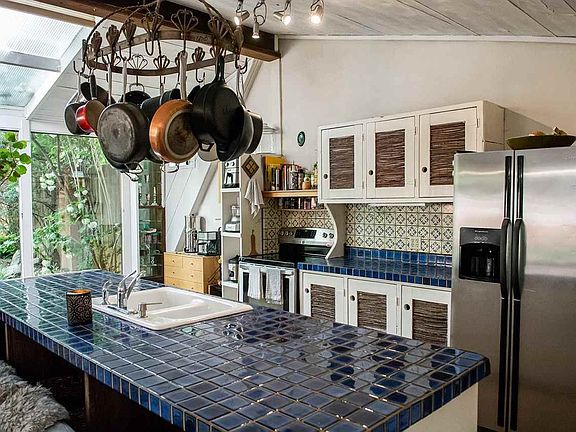 If home is where the heart is, this is the heart of an artist. Built in the Moroccan Riad style, the home is centered around a beautiful open patio, offering complete privacy while enjoying the open sky. The open concept main room is full of light with high ceilings while a cozy gas stove warms the charming sunken living room. This home was once an earthship and still has some of the handcrafted features and artful flair, while being updated to conventional systems. Above the two car garage is a light filled one bedroom apt. full kitchen and bath, great rental income or use for guests. A separate beautiful open studio space for yoga, painting, music or Tango lessons! The verdant lot has loads of mature fruit trees and is bursting with perennials. A built in grill and cooking area on the patio make entertaining easy and you will want to in this beautiful setting!