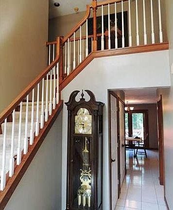Spacious all brick home in cul-de-sac in sought after Walnut Woods. Private wooded lot, tiered and leveled, double deck. Large kitchen with granite counter tops ordered. Kitchen opens to great room with beautiful fireplace surrounded by Palladian windows. First floor den. Large dining room designed for entertaining. Huge master suite with 2 walk-in closets. All bedrooms large with lots of closets. Finished basement with stunning fireplace and 2nd office and powder room. Walks out to hot tub on lower deck.