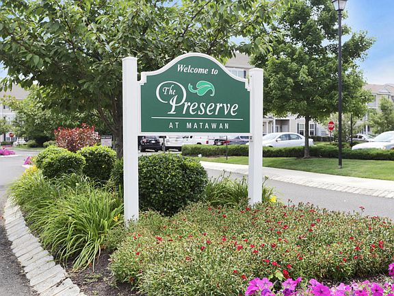 Welcome to the Luxurious Preserve at Matawan....THIS IS THE ONE.....SHOWS LIKE A MODEL HOME.....This 1st floor unit features updated 42'' cabinets and stainless steel appliances, wood floor in kitchen and breakfast bar. Large master suite with 2 closets, one a walk in. Large master bath with dual sinks and tiled floor. Large living room with electric remote fireplace. Tastefully decorated throughout, 9 ft ceilings and crown molding. Private balcony with storage backs to woods for a private and tranquil setting. Did I mention that this is a COMMUTERS DREAM....located near NJ Transit train and buses. NO DISAPPOINTMENTS here.