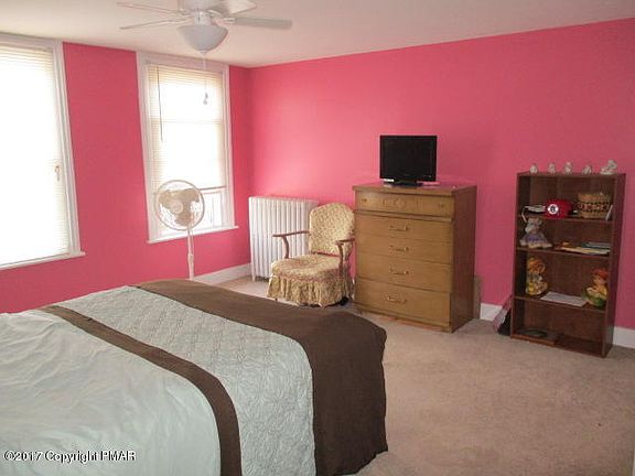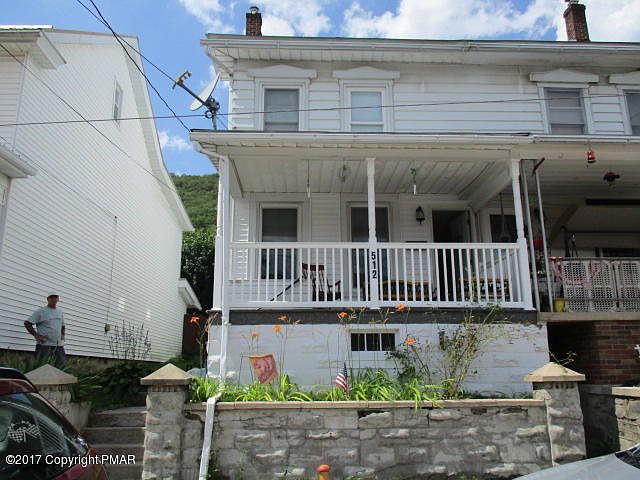 Charming twin in Jim Thorpe. First floor boasts both a formal living and dining room. Kitchen with upper and lower cabinets for plenty of storage. Second floor offers three spacious bedrooms and a full bath. Nice sized rear yard fenced on three sides just needs your patio set and some friends! Bring your paint brush, faorite colors and splash your personal touches to make it yours!
