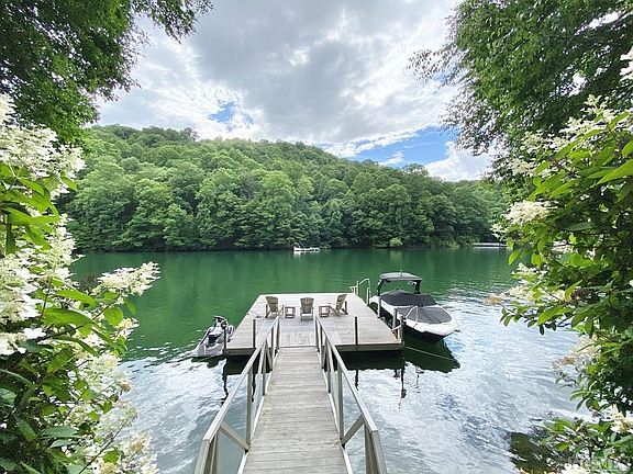 This beautiful lake home is set up to enjoy immediately with its updated interior, expansive decks and large dock all resting in a quiet cove on the desirable southeast side of Lake Glenville close to town. The home features a master suite and guest room on main, a third guest suite on the upper level and a fourth suite on the lower level. The dining, kitchen and great room featuring a stone fireplace flow together with vaulted ceilings and lake views off the front deck to enjoy the pristine setting on the lake. The large family and game room on the lower level provides for cozy evenings around the fireplace and a fun family game room all while enjoying beautiful lake views. Call me to schedule a tour of this lakefront home today!