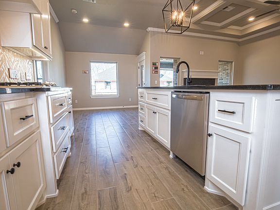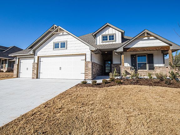 Discover the small town feel of Yukon, in the popular, Frisco Ridge Community. The Blue Spruce is 2185 sq ft (including 285 sq ft of outdoor living with wood burning fireplace and TV hookups) offering 4 bedrooms, 2 full bath, and 3 car garage. Living Area includes coffered ceiling, gas fireplace and beautiful sliding barn-door. Kitchen includes 3CM granite in the kitchen, decorative vent hood, cabinets to the ceiling, under cabinet lighting, and stainless steel appliances. Master Bedroom and bath include box ceiling with uplighting, walk in master shower, Jetta Tub, and large walk in closet with 3rd row seasonal hanging. Fully sodded front and back yards with underground sprinkler system, fully landscaped front yard. The air filtration system, Rinnai tankless hotwater heater, solarboard, and R44 insulation help make this home energy efficient. Also included is a storm shelter, and TaberTech home automation system for family safety, 1 year in-house builders warranty.