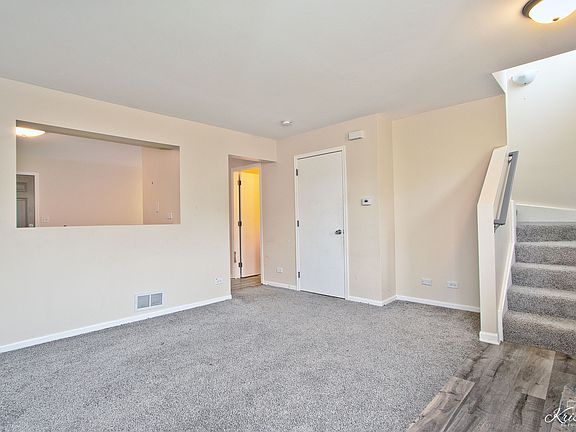 Almost everything is NEW NEW NEW! Newer paint inside with newer carpet. An adorable front porch greets you as you enter into a cozy family room with great flow into your eat-in kitchen. New SS appliances- new kitchen floors and easy access for carrying in groceries with the interior access directly to the 2 car garage. Tastefully remodeled with new light fixtures and neutral colors. Half bath is located on the main floor for guests. 2nd level features a master suite with direct access to the full bath. 2nd bdrm has vaulted ceilings and plenty of closet space. Laundry day is a breeze with the washer/dryer located on the second level. Full basement partially finished perfect for storage/ extra living space/ work out the room you name it. Move in ready! Snow plowing and lawnmowing are included in a super reasonable HOA fee. See it today- close ASAP!