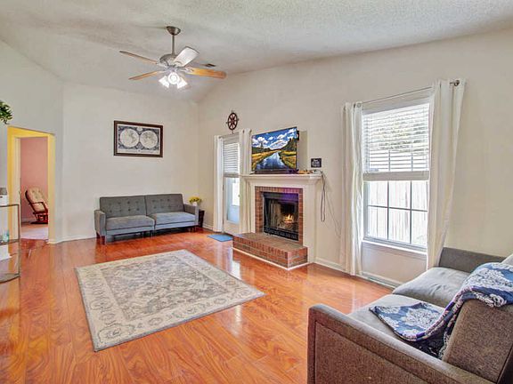 We just found your forever home! Amazing community, with low HOA fees this home is located at the end of a quiet cul-de-sac. One entrance into the neighborhood cancels any thru traffic, making a safe place for your kids to play or walk to school. Elementary school at the front of the neighborhood, and quick drive to Middle and High schools. Less than five minutes from Walmart shopping center with plenty of surrounding shops and restaurants.Outside, the long driveway provides plenty of parking as well as the attached garage. The front yard is framed with square hedges following the sidewalk path to your front door. Watch your kids play on the rope swing out front, while you relax from the rocking chair on the porch. The front door opens to reveal an easy to navigate floor plan, glossy... hardwood floors, and high ceilings ahead. Straight ahead the living room offers tons of natural light, and a beautiful brick fireplace along the right side wall. On the left, your dining space is open, and can easily accommodate a large table. An easy space to host friends with, it directly leads into your eat-in kitchen across the room. On the left of the kitchen, a cozy nook perfect for breakfast or simple family meals. The space is warmed up from the natural light coming through the windows, and leads straight into the kitchen. The kitchen showcases wood cabinets, and black laminate countertops that coordinate with the appliances. The kitchen has plenty of storage, and includes a separate pantry as well. It also features a brand new microwave, and garbage disposal! Right behind the kitchen, is the laundry room. The laundry room has an overhead shelf for convenience and direct access into the attached garage.The bedrooms are just past the living room. The first door on the right, is a good sized bedroom and the pink walls are perfect for your baby girl! The room includes tan carpet floors, and a good sized closet.The next bedroom would make a great office, with the same glossy hardwood floors as the common spaces, and hallway. The room still works for a large bedroom as well, with its own closet and ceiling fan above. These bedrooms share a hall bath with tan tile floors, a modern sink vanity, and two in one tub shower. At the end of the hall, is your master suite. This large room fits all your essential bedroom furniture and still has room in between. Around the corner, is your ensuite bath, and spacious closet. The bath looks similar to the hall, with tan tile floors and two in one shower. The sink vanity is a dark wood, with plenty of cabinet storage below. To get to your backyard, you can follow the door in the living room out to a brick paver path. The path leads to a larger, brick paved area perfect for your patio table to enjoy outdoor dining when the weather is nice! Your kids will love how big the backyard is, and the tall privacy fence adding extra seclusion!You'll want to see this home in person. It has all the potential to be your forever!A new HVAC unit was also recently added to the home. Come see this property in person ASAP!Use preferred lender to buy this home and receive an incentive towards your closing costs!