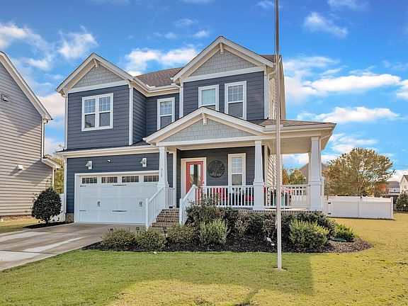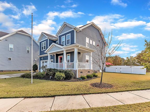 Welcome to this gorgeous home nestled in the heart of Knightdale Station. This 4-bedroom, 2.5-bathroom beauty offers a large covered front porch, a screened back porch, convenient concrete slab perfect for grilling, and a fully fenced backyard—perfect for kids and pets. The heart of the home is the chef's kitchen, complete with quartz countertops, a large island, subway tile backsplash, and stainless steel appliances. You'll also appreciate the cozy gas log fireplace, 2-car garage, tankless water heater, and security system. Located in the coveted Knightdale Station neighborhood with a pool, park, walking trails, and top-notch schools like Thales Academy, this home offers the best of both comfort and convenience.