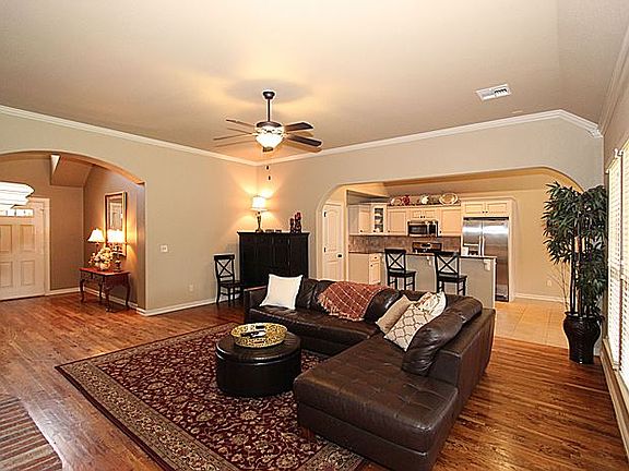 Open floor plan in Jenks Schools! Beautiful wood & tiled floors, lighting, ceilings and stone fireplace. SS appliances in kitchen w/breakfast nook, spare pantry & bar seating. HUGE master suite & closet! XL back patio & back yard! Neighborhood park/trails