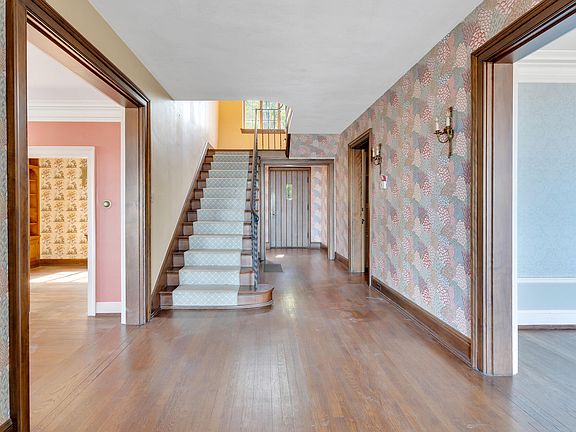 Inside, you'll find solid construction with concrete walls, beautiful molding throughout, rich hardwood floors, and a striking staircase with custom ironwork. The home offers four or five bedrooms—the fifth is perfect for a nursery, office, or creative space. Two oversized bathrooms upstairs and a convenient half bath on the main floor provide plenty of room for everyday living and entertaining. An opportunity to expand the living space into the basement is available.