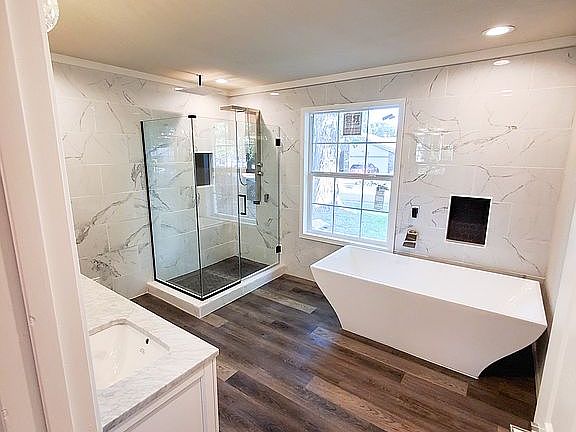 FULL MODERN FARMHOUSE REMODEL!! Remodeled in HGTV Fixer Upper style! Must see! Text or call 918-268-9885 for showing. The perfect turnkey family home in an established neighborhood, this 4 bedroom, 2.5 bath has the master bedroom downstairs and all other bedrooms upstairs. The extra large fourth bedroom could be used as a bonus room or game room. Luxury vinyl floors are featured in the open concept living/dining/kitchen area, as well as downstairs hallways and all bathrooms. The master bath is reminiscent of your favorite luxury retreat spa, featuring a rainhead shower in addition to the full body shower panel with body washers, a free standing soaking tub with waterfall faucet, as well as spa lighting to create a colorful relaxing atmosphere. The master closet includes built in shelving and a mini-chandelier. The kitchen is complete with wrap around granite countertops, matching Frigidaire gas stove, dishwasher, and microwave in black stainless steel, and finished with a classic subway tile backsplash. Enjoy cozy evenings in front of the natural wood feature above the fireplace. Extend your gatherings outdoors on the deck in the large backyard perfect for kids backing up to a greenbelt. You’ll love coming home to your custom made wood front porch. Other features include: LED lighting throughout entire home Recessed lighting throughout USB charging receptacles in kitchen Wired smoke alarms All new electrical devices throughout (receptacles and switches) Brick gas fireplace New ceiling fans throughout Designer lighting fixtures White cultured marble vanities in upstairs bathroom and half bath Marble double floating vanity in master bath Master walk-in closet Custom built sliding wood barn door to master closet New indoor and outdoor paint New carpet throughout with upgraded pad Carpeted stairs and second floor Custom built wood mailbox Fully fenced yard New privacy fence gates Fully finished garage with wood beams and epoxy coated floor for easy cleanup LED recessed lighting in garage New A/C units New furnaces New air ducts throughout Great Broken Arrow school district. Popular Spring Creek Elementary close by. Warren Theatre, Walmart, Target, Rose District, and many restaurants and other shopping less than 10 minutes away! Less than 2 minutes from the Creek turnpike at Elm, quick access to anywhere in the metro area. Quiet, safe, kid-friendly neighborhood. MOVE IN READY! NOTHING UNTOUCHED IN REMODEL!